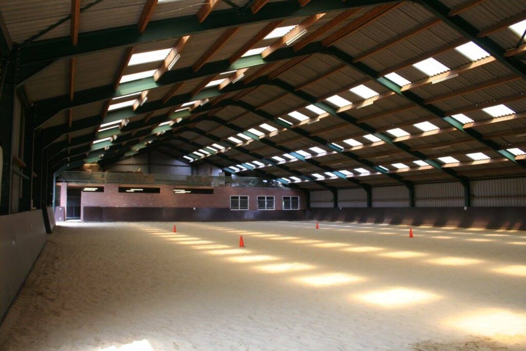 We beschikken over een buitenbak en ruime binnenbak met aangrenzend een gezellige kantine. Tevens is er een poetsplaats met warm en koud water. Onze binnenbak is ook te huur voor niet-pensionklanten, zodat je in de wintermaanden – als jouw eigen bak niet goed begaanbaar is – toch je paard kunt blijven trainen. Bel of mail voor meer informatie.